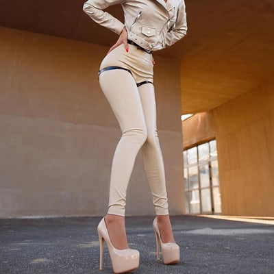Leather Bright Leggings Women Nightclub Sexy PU High Waist Slim Pants Women Leggings High Elasticity Leather Trousers